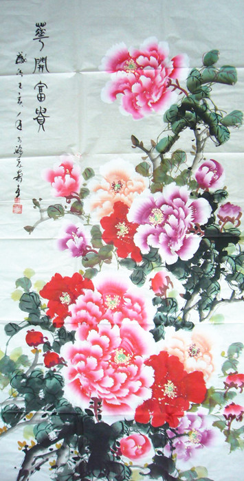 第一字画网的四尺竖幅国画牡丹,这幅四尺的牡丹作品裱完后长度近1.8米,是一幅水准上佳的作品,作品画风细腻、栩栩如生,牡丹寓意着富贵吉祥,作品上又写着花开富贵四个字,挂在家里客厅或是送人都是非常不错的选择,如果放在画廊出售,王柳春老师此幅四尺竖幅国画牡丹的标价起码在1200元左右。