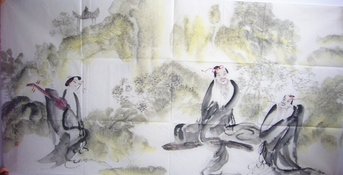 第一字画网的精品人物国画,水墨风格的人物和景色构成了画面,栩栩如生,如果放在画廊出售,江枫老师此幅精品人物国画的标价在4000元左右。