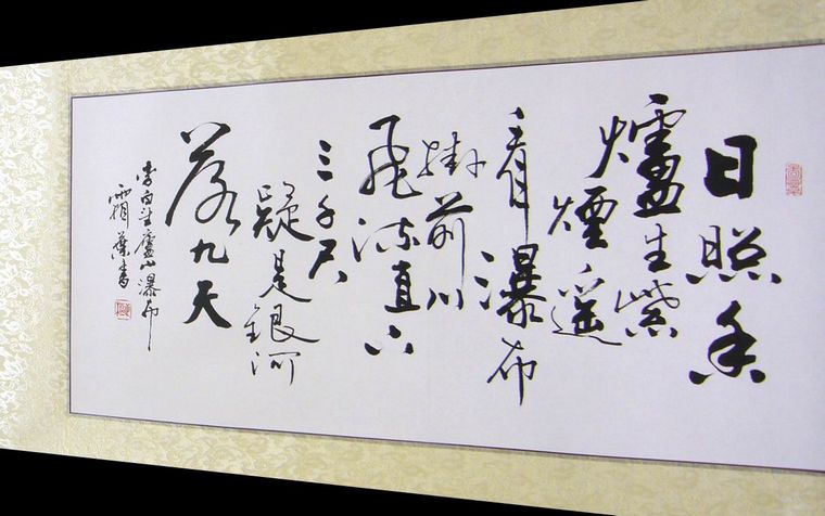 • 产品简介: 望庐山瀑布,老书法家李正枢老师作品,已装裱。